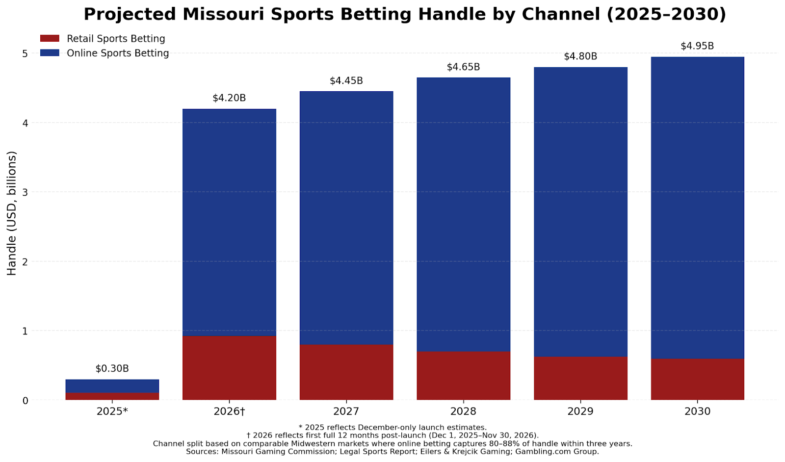 Maintenant que le marché légal des paris sportifs est en place, le débat évolue. On ne se demande plus si les paris sportifs vont fonctionner, mais comment le marché va se développer. Les premiers signaux pointent clairement vers une croissance portée par le mobile. Comme la plupart des marchés américains nouvellement réglementés, le Missouri devrait privilégier largement les paris en ligne plutôt que le trafic en points de vente, grâce à l'accès à l'échelle de l'État, la présence de marques nationales connues et une clientèle déjà habituée aux services mobiles.